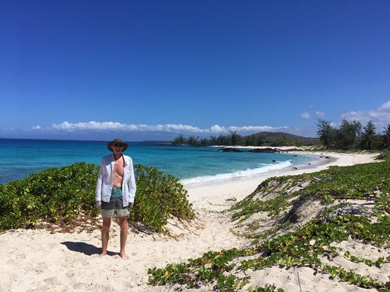 Here's a photo of me and an empty beach when the pandemic stifled tourism: